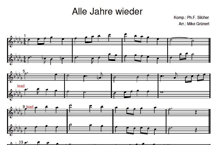 15 Deutsche Weihnachtslieder wurden von Mike Grünert als Duett gesetzt.