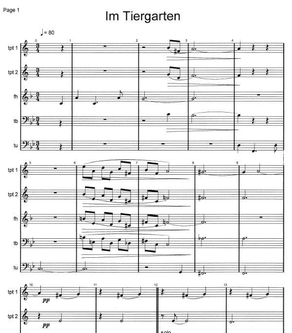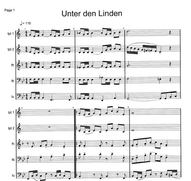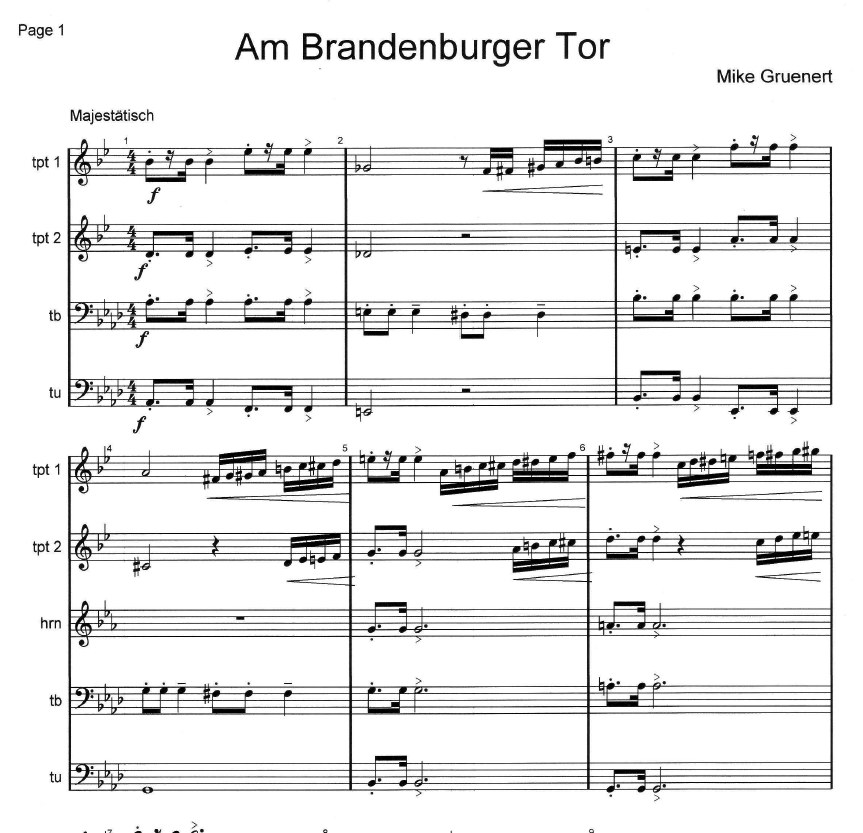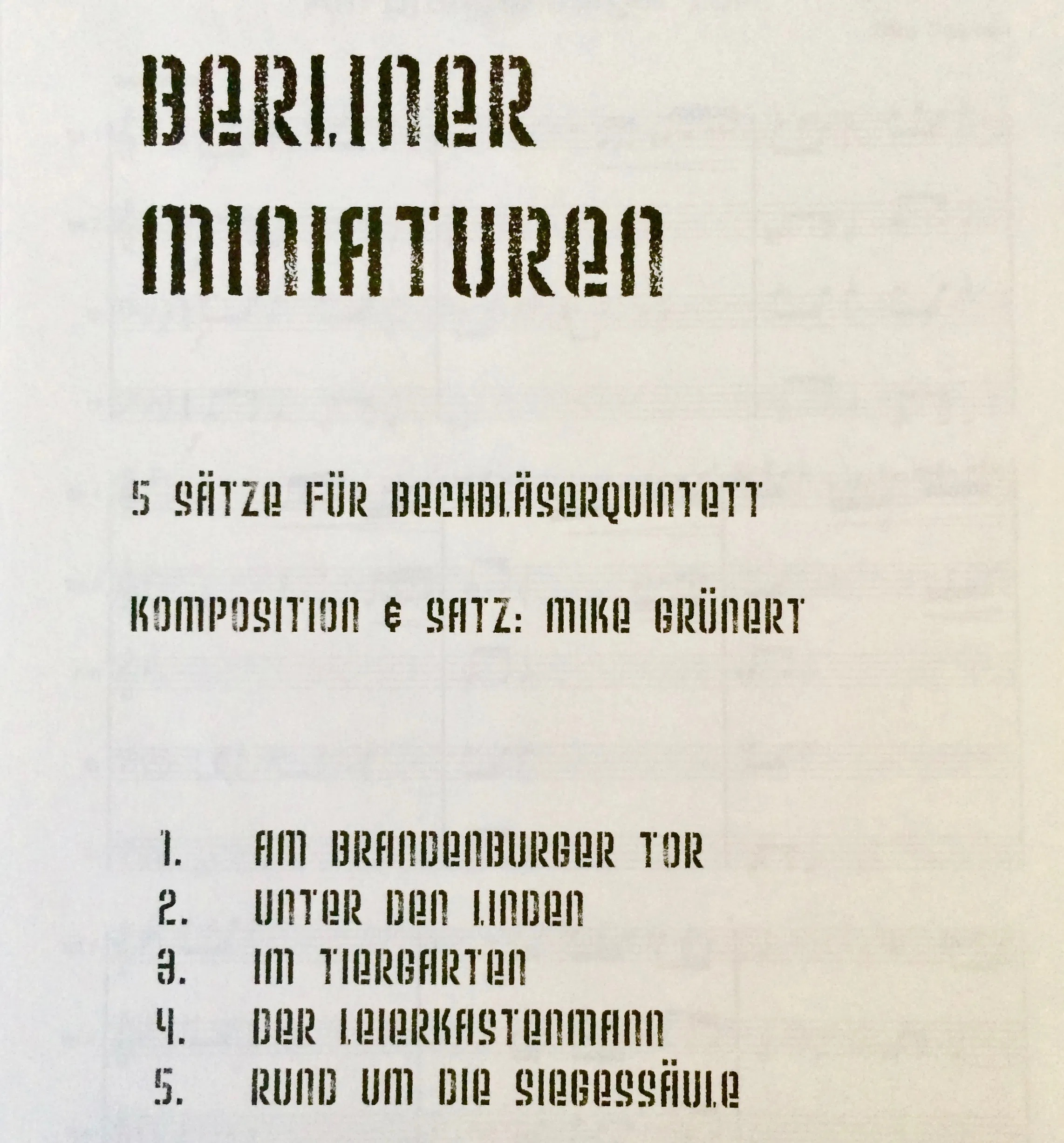 Mike Grünert schuf hier 5 charaktervolle Sätze zum Thema Berlin für Blechbläserquinett.