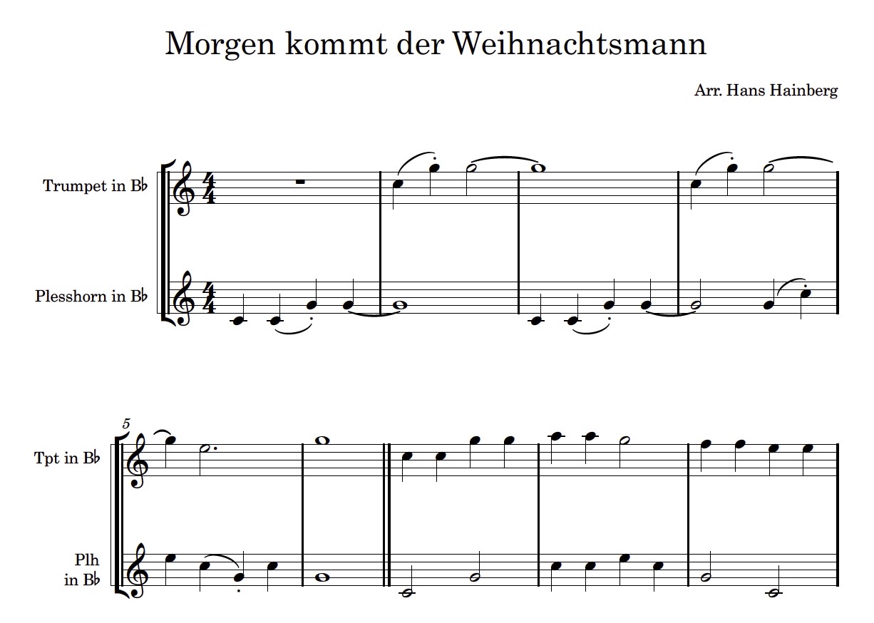 Hans Hainberg erfand zur Melodie im Ventilinstrument in Bb eine originelle Gegenstimme für Naturhorn.
